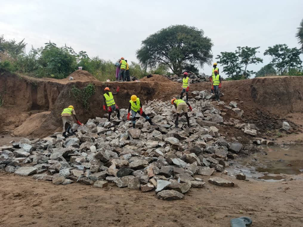 In preparation for construction, materials such as stones, sand, cement, bricks, pipes, mesh, and gravel, were sourced and prepared, alongside the identification of reliable local masons.